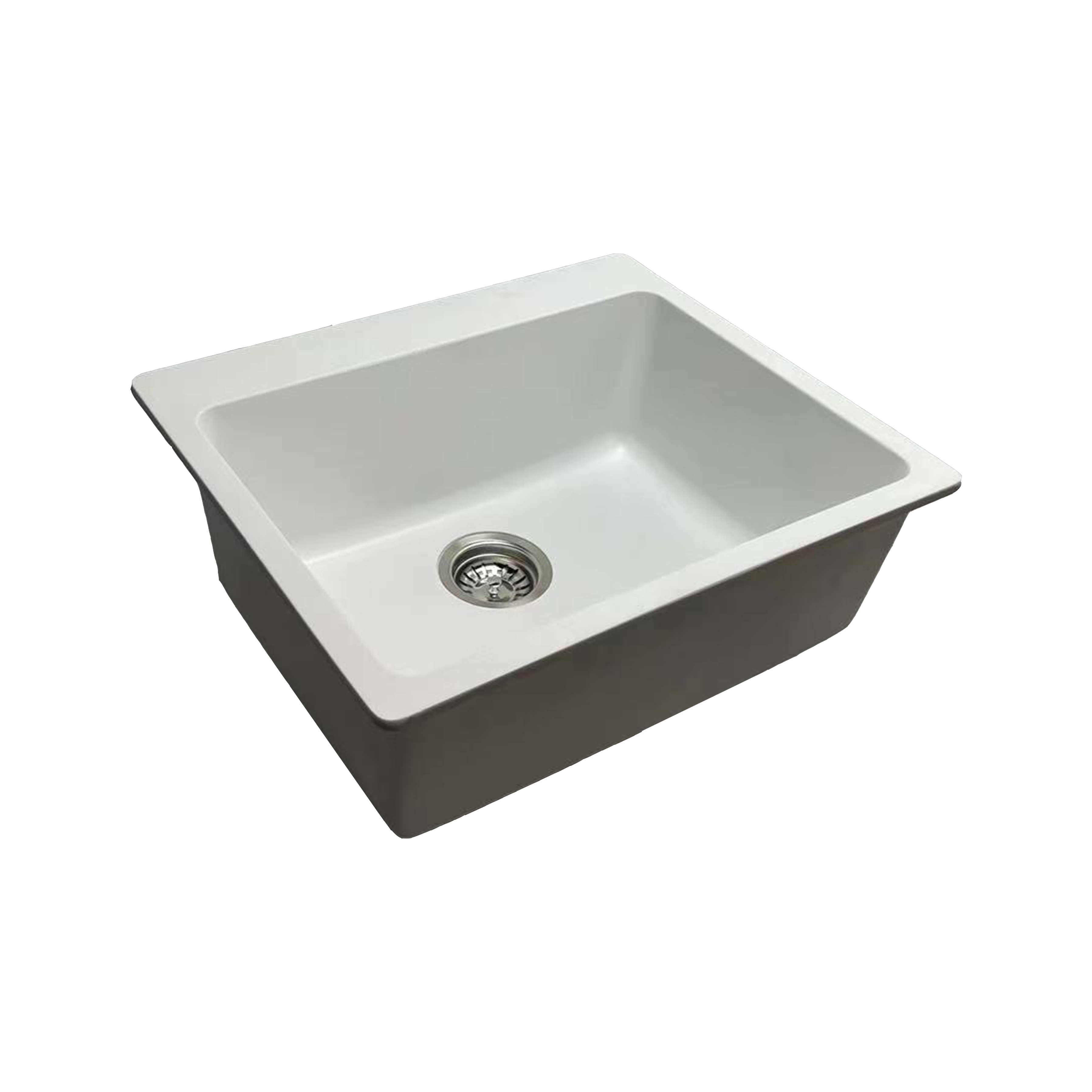 580*485*220 Kitchen Sink Laundry White Granite Stone Sinks Single Bowl Basin [44-GS5849W]