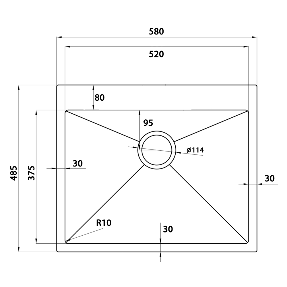 - Single sink measures 580 x 485 x 220 mm (L x W x D)