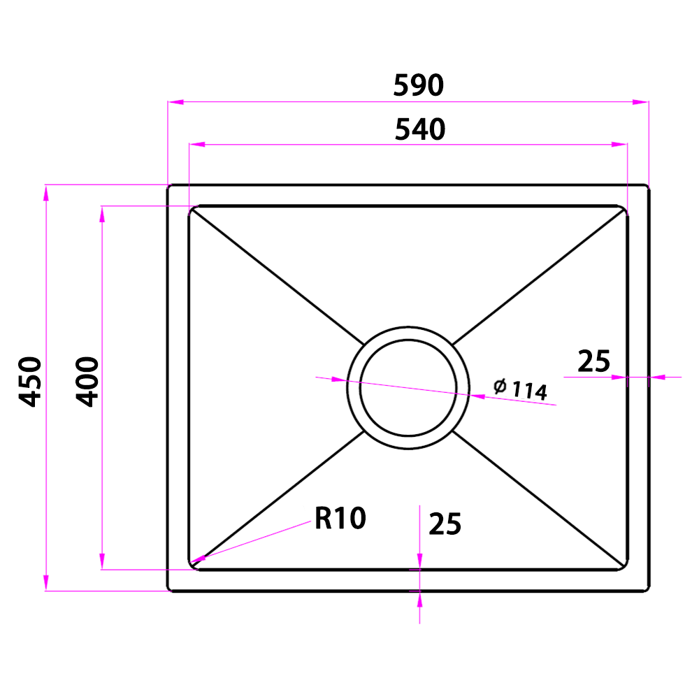 - Single sink measures 590 x 450 x 240mm (L x W x D)