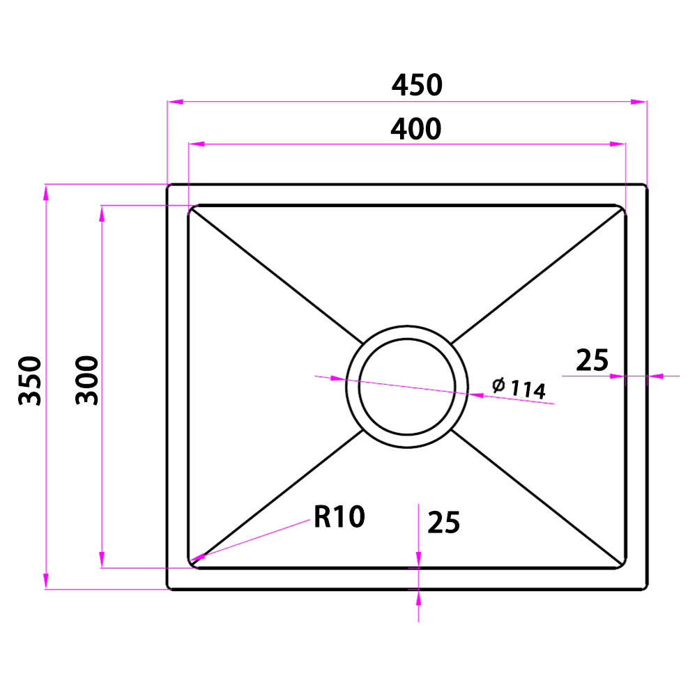 - Single sink measures 450 x 350 x 220mm (L x W x D)
