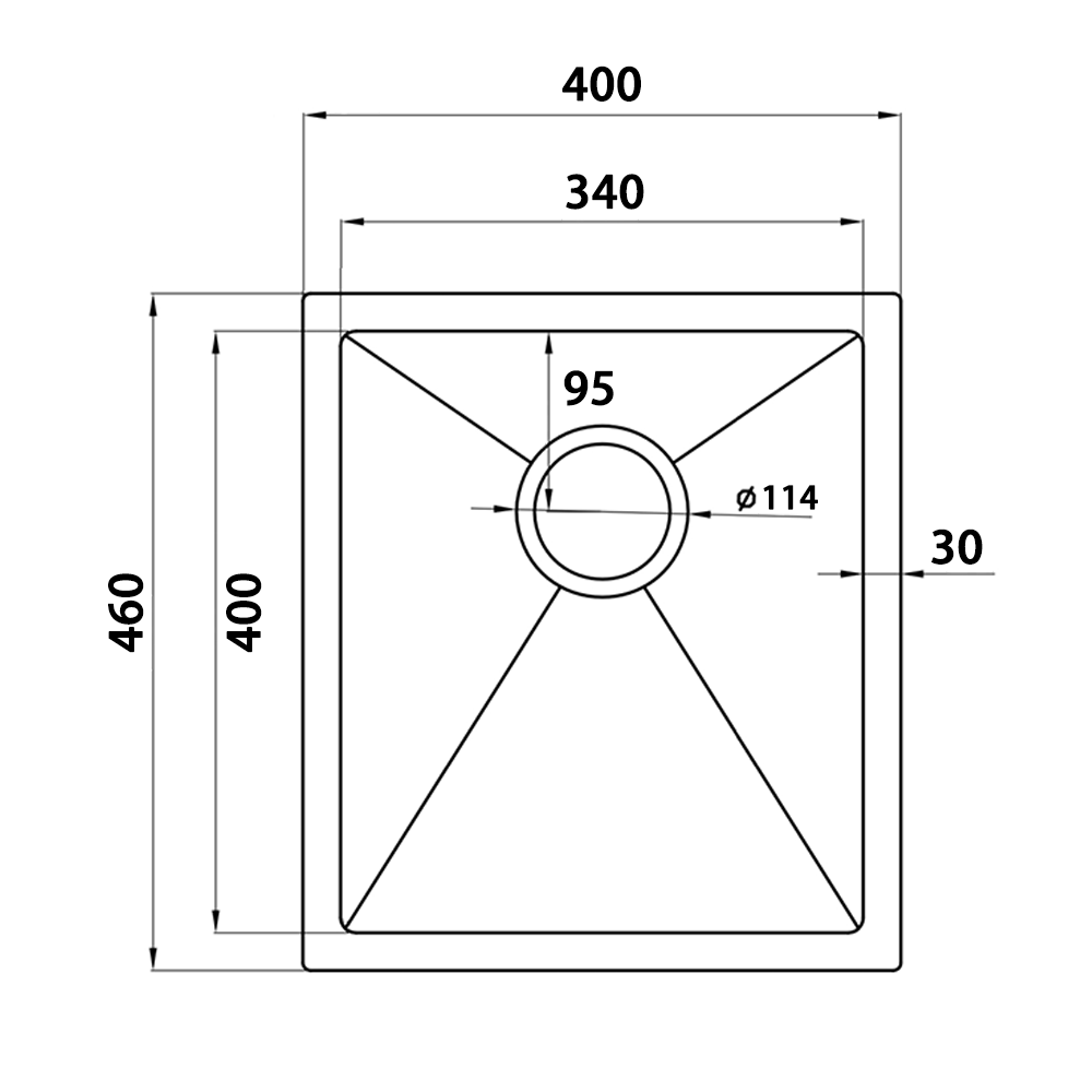 - Single sink measures 460 x 400 x 250mm (L x W x D)
