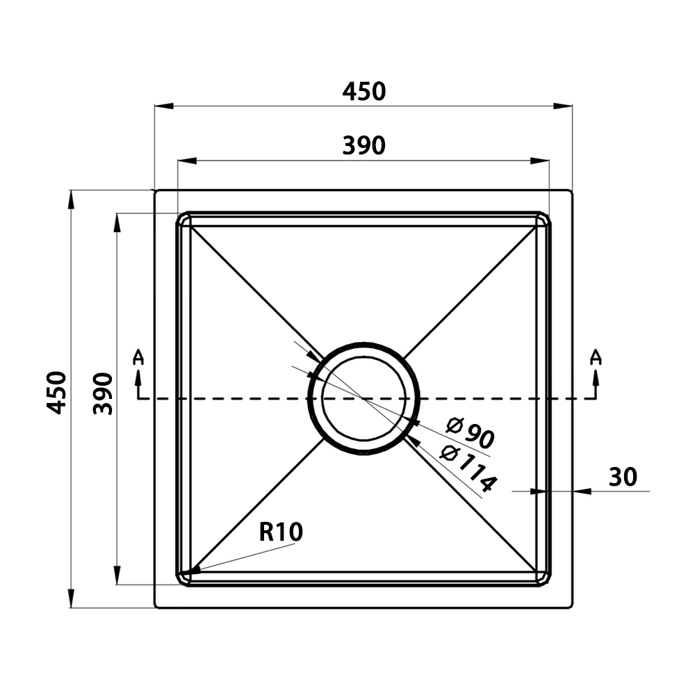 - Single sink measures 450 x 450 x 240mm (L x W x D)