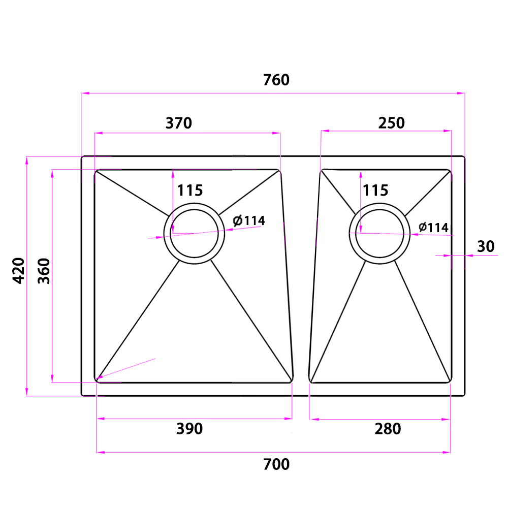 - Sink measures 760 x 420 x 220mm (L x W x D)