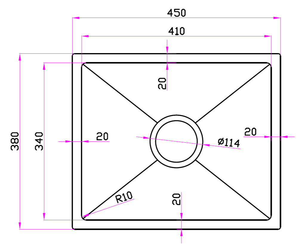 450*380*200 Handmade Stainless Steel Under/Topmount Kitchen Laundry Single Sink [44-HF3845]
