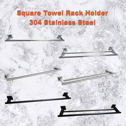 Square Single Towel Rail - Chrome / Matte Black [12-6024/6036/6040]