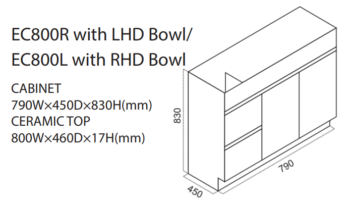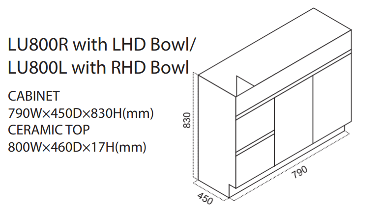 - Overhanging ceramic top that prevents wall retaining on the cabinet